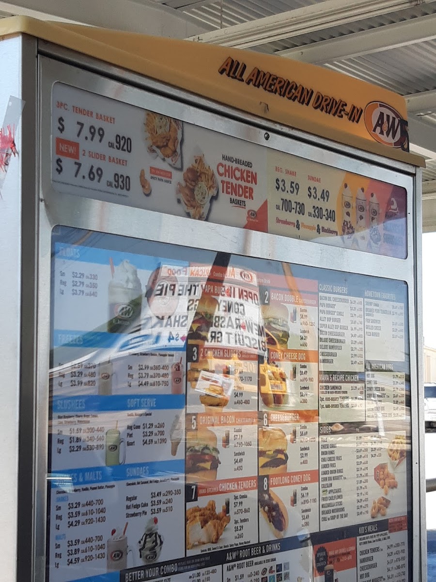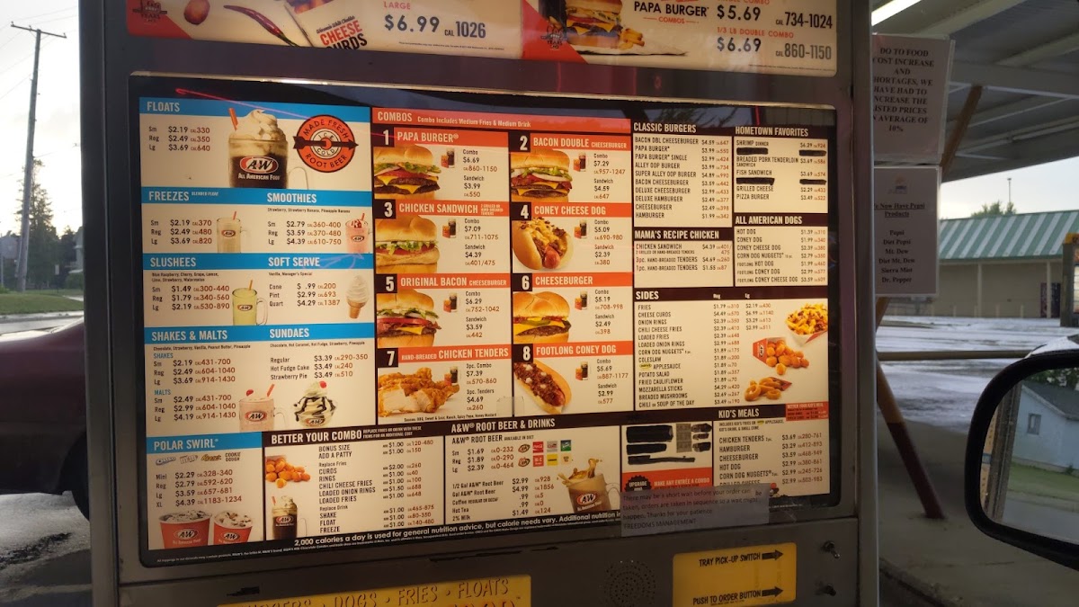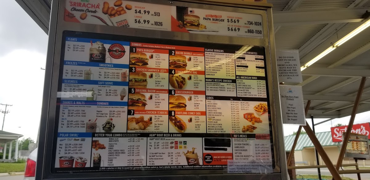 100% all beef patties, American cheese, lettuce, tomato, onion, pickles, and signature A&W papa sauce.