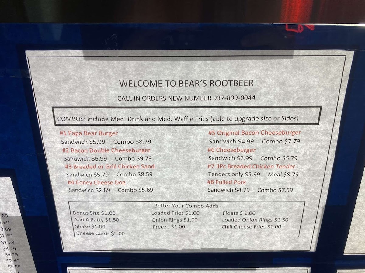 Bear's Rootbeer (Formerly A&W) Menu (Update 2025)